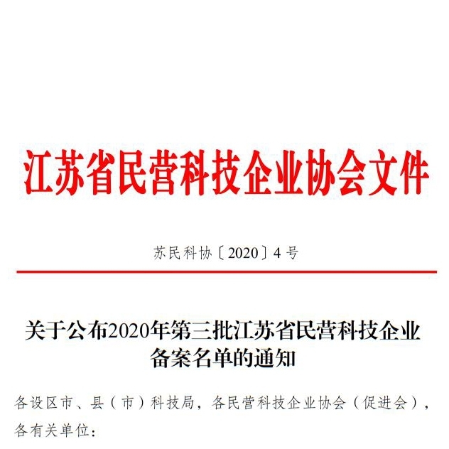 近日,由江蘇省民營科技企業協會公布,《2020年第三批江蘇省民營科技企業備案名單》中,我們創想儀器...